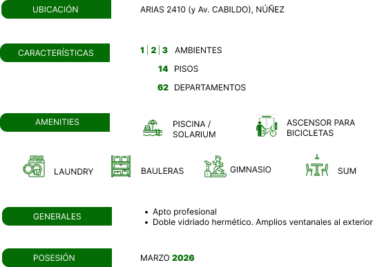 Emprendimiento inmobiliario en pleno corazón de Núñez Descargue su folleto Consulta para más info Proyecto, Dirección y Construcción: Estudio Yoffe Estudio Naszewski Planos de las unidades